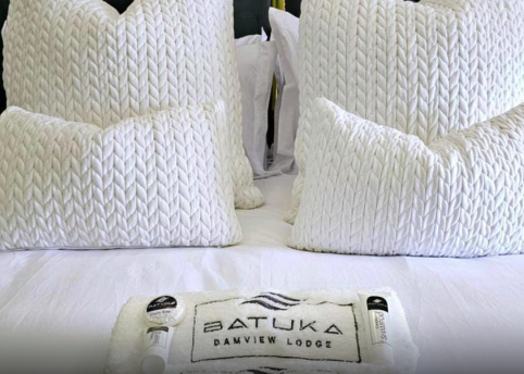 The Standard Queen Room has a private entrance, an en-suite bathroom with amenities and towels, a TV, a ceiling fan, a workstation, and a patio with seating overlooking the dam and mountains. Guests enjoy Netflix, Showmax, and access to the communal pool.