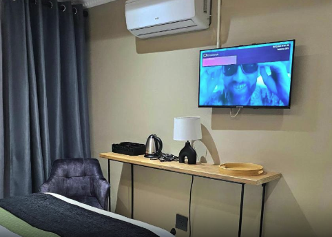 The Luxury Queen Room features a private entrance, and an en-suite bathroom with a bath, shower, and towels. Enjoy air-conditioning, coffee/tea facilities, a TV, a workstation, a patio with seating, Netflix, Showmax, and access to a communal pool.